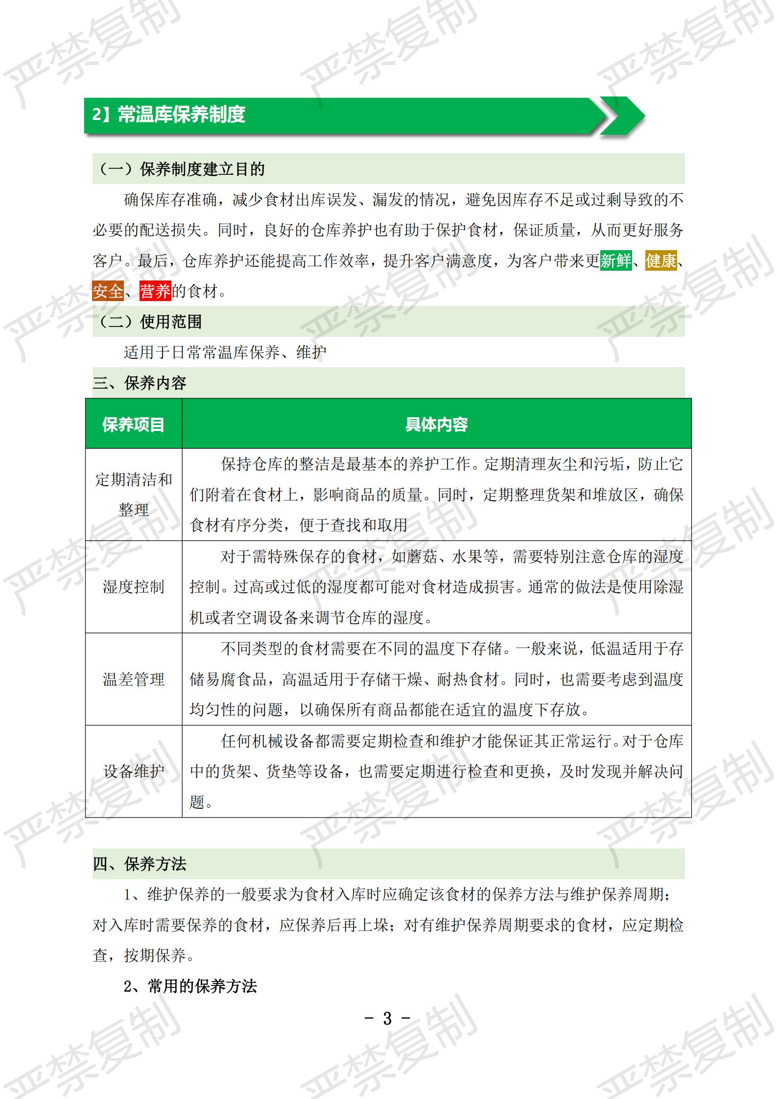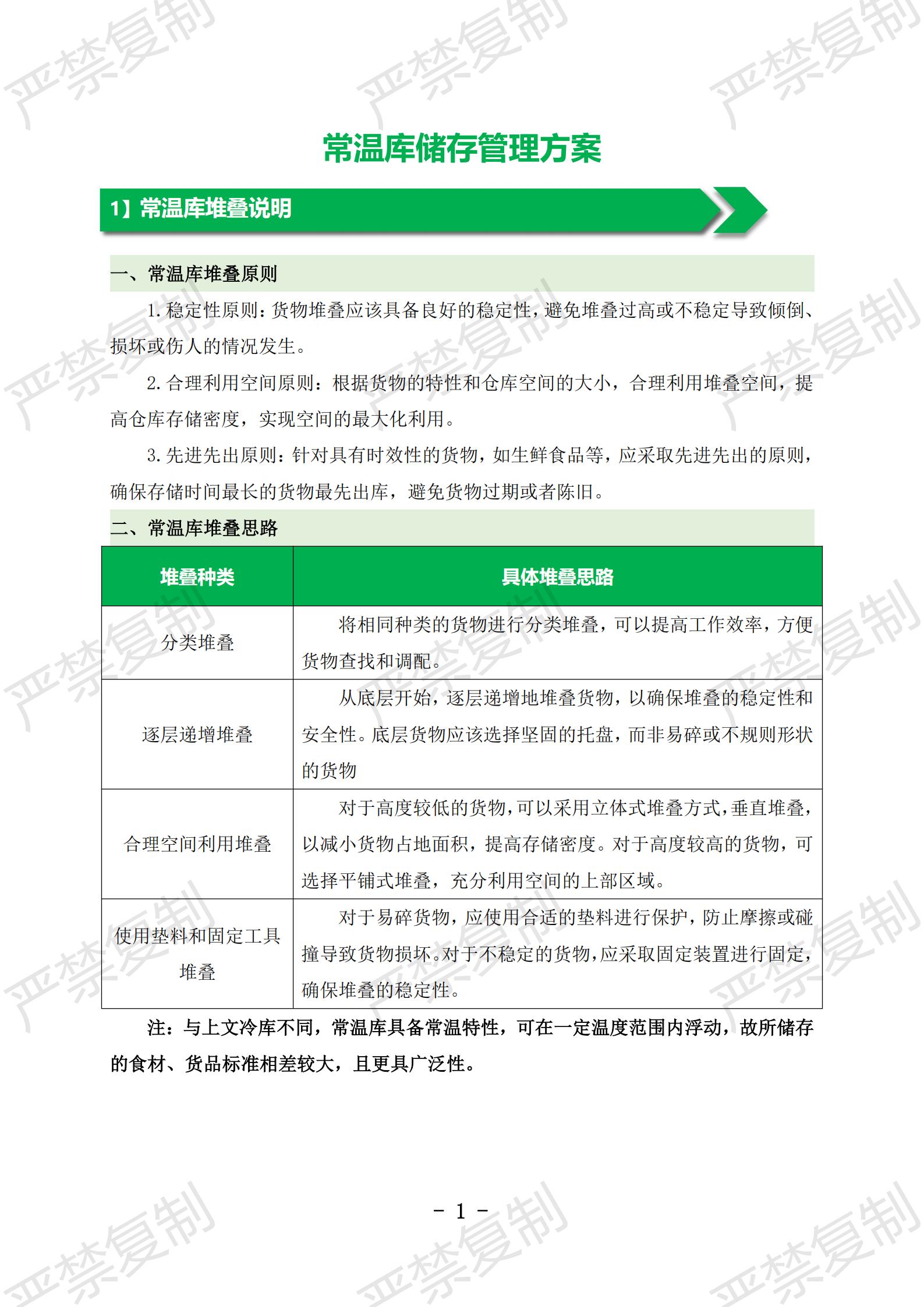 1】常温库堆叠说明;2】常温库保养制度;3】常温库日常管理制度